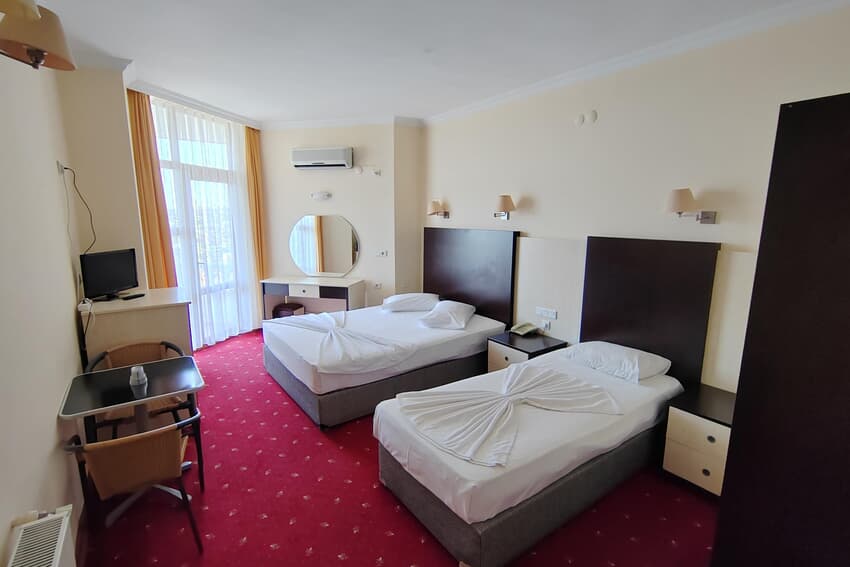 Tüm odalarda Osmanlı kurnası özel mermer küvetler, uydu yayınlı TV, merkezi ısıtma kalorifer, klima, buzdolabı, minibar, saç kurutma makinası, direkt telefon, WC ve balkon bulunmaktadır.