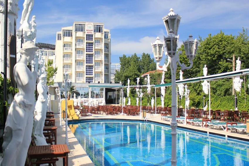 | Konaklama Açıklaması | yarım pansiyon,açık büfe olarak hizmet vermektedir. Öğlen havuz barlarda uygun fiyatlarla fast food, içecekler, hamur işleri uygun fiyatlarla sunulmaktadır. |